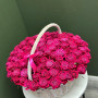 На фото 101 малиновая роза в корзине. В составе: роза 101 шт, оазис флористический 3 шт, корзина (xl) 1 шт, . Все цветы свежие и ароматные, букет красиво оформлен и отлично подходит для подарка. Доступна доставка цветов или самовывоз.