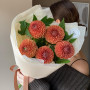 Букет из 9 персиково-розовых георгин