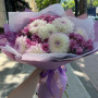 Букет из пионовидных роз, альстромерии и хризантем
