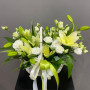 Корзина с белыми лилиями и эустомами в Новодвинске