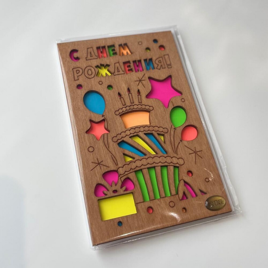 Открытка деревянная «С Днем Рождения» в Новодвинске